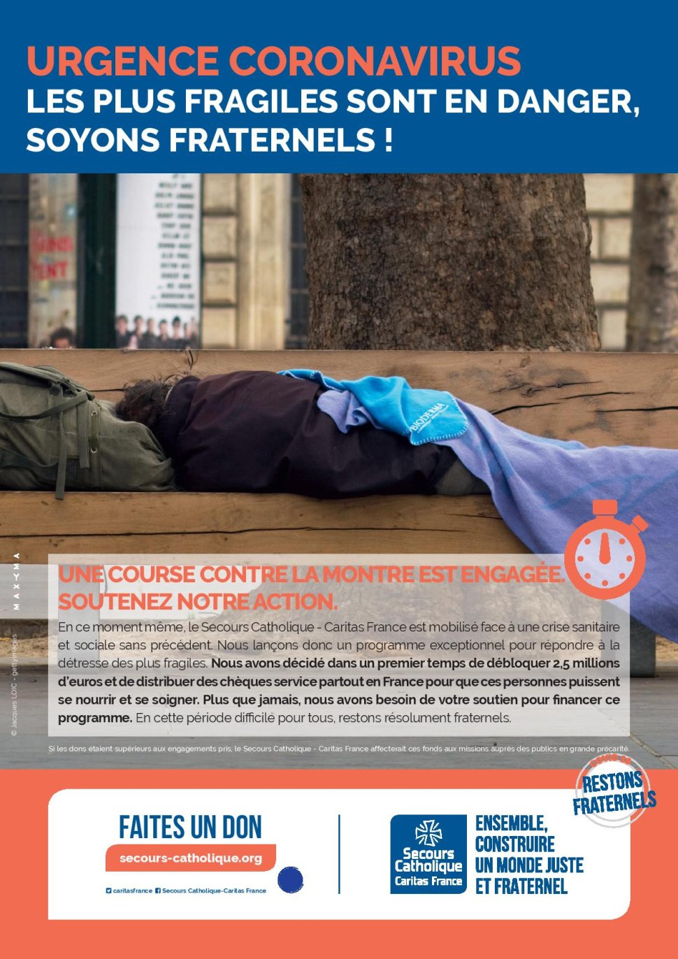 Pour poursuivre notre mission auprès des plus fragiles, nous avons besoin de votre solidarité : bulletin de participation à l’appel au don sur le site internet : https://don.secours-catholique.org/b/mon-don?cid=120&_cv=1